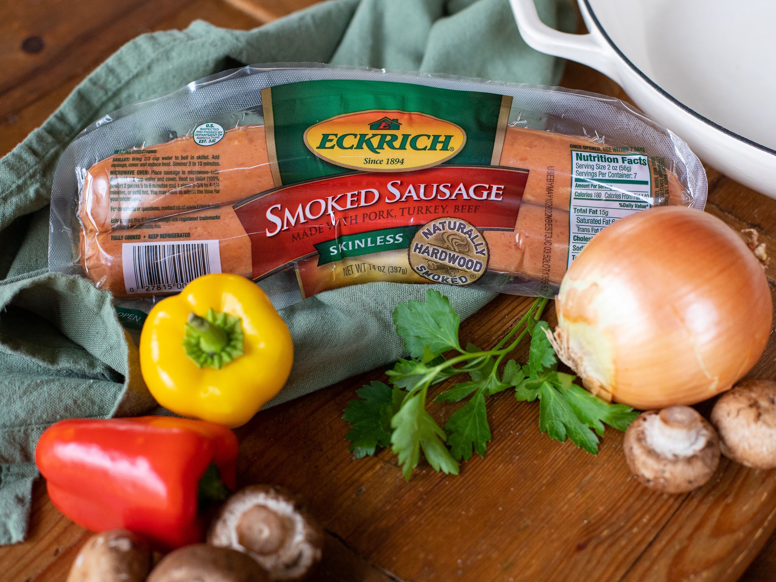 Grab Eckrich Smoked Sausage For As Low As 2 At Publix iHeartPublix , Eckrich smoked sausage is naturally hardwood smoked and crafted with just the right blend of flavorings, for a truly rich, savory taste with a kick!